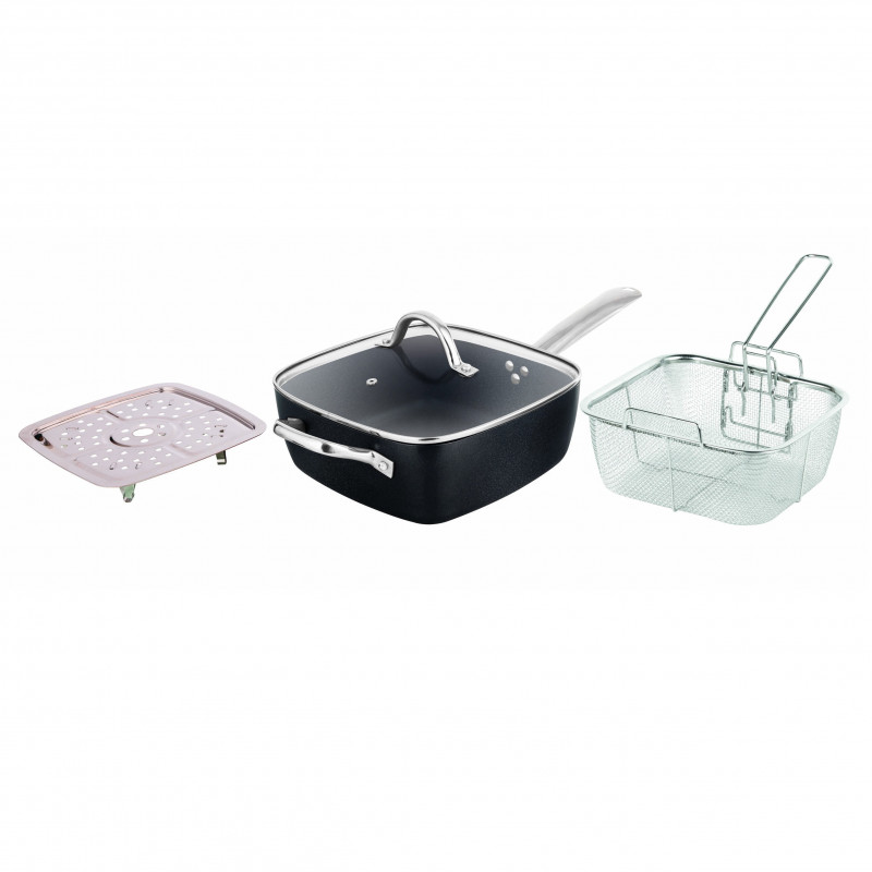 Tigaie cu cos de prajire Oliver Voltz OV51319H4, 24x24x9.5 cm, 4.3 L, Acoperire neaderenta, Inductie, Negru